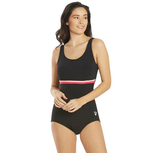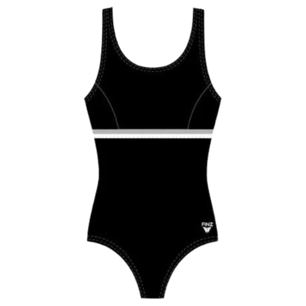 The Finz Women’s Horizontal Splice One Piece Swimsuit provides more coverage and a supportive fit with a flattering horizonal splice below the chest. Great for any aquafit class.